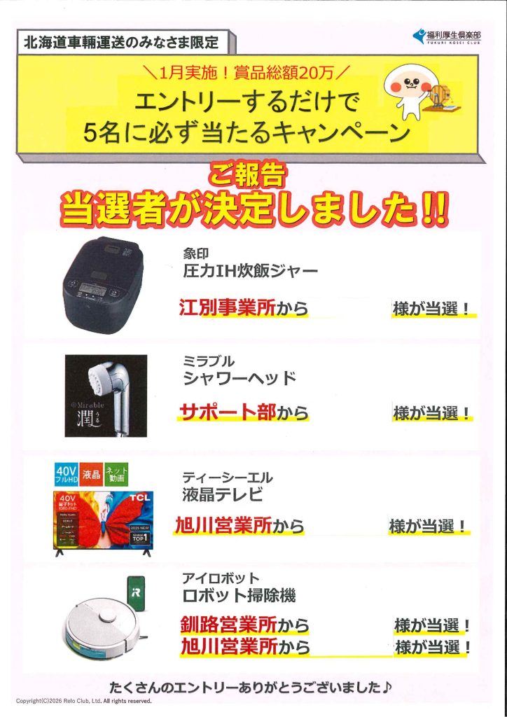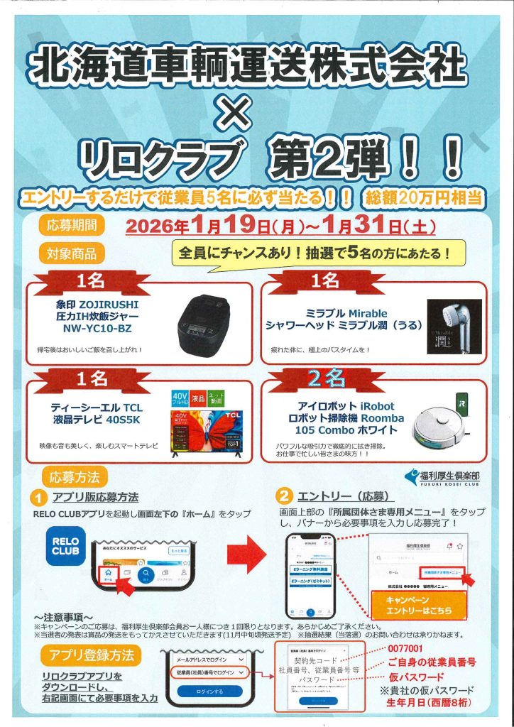 トップ > 新着情報 > 【第2弾!】社内限定・プレゼント企画を実施しました! NEWS 新着情報 2026.02.14【第2弾!】社内限定・プレゼント企画を実施しました! 福利厚生の一環としてリロクラブ様とタッグを組み、【第2弾!】社内限定・プレゼントキャンペーンを実施しました。 引き続き、従業員に喜んでもらえるような企画を続けていきます。 新着情報一覧へ戻る